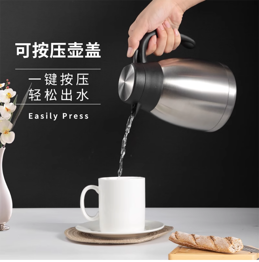 SUNNEX不锈钢真空保温壶采用食品级不锈钢材质,物理性能稳定,高温受热不会释放有毒物质,保证日常使用的安全性。 SUNNEX不锈钢真空保温壶360°全密封不漏水;一键按压,轻松出水,有效避免热水喷溅伤及人体,健康饮水,全因有你。