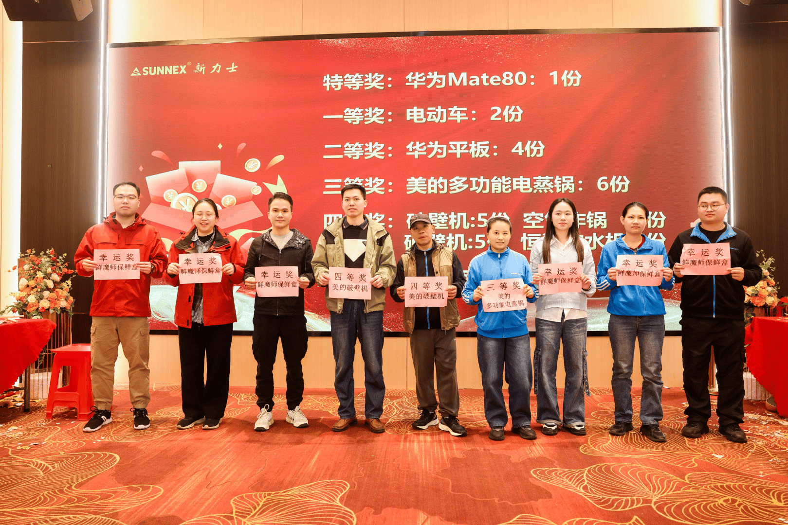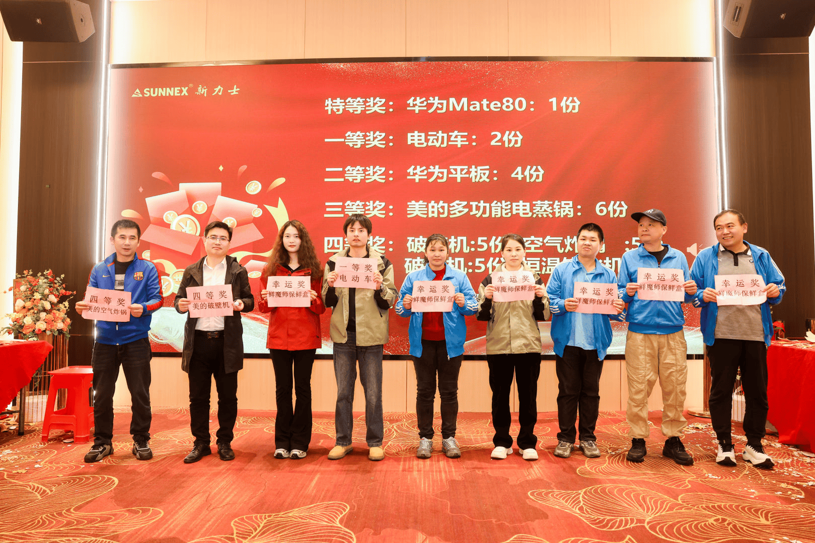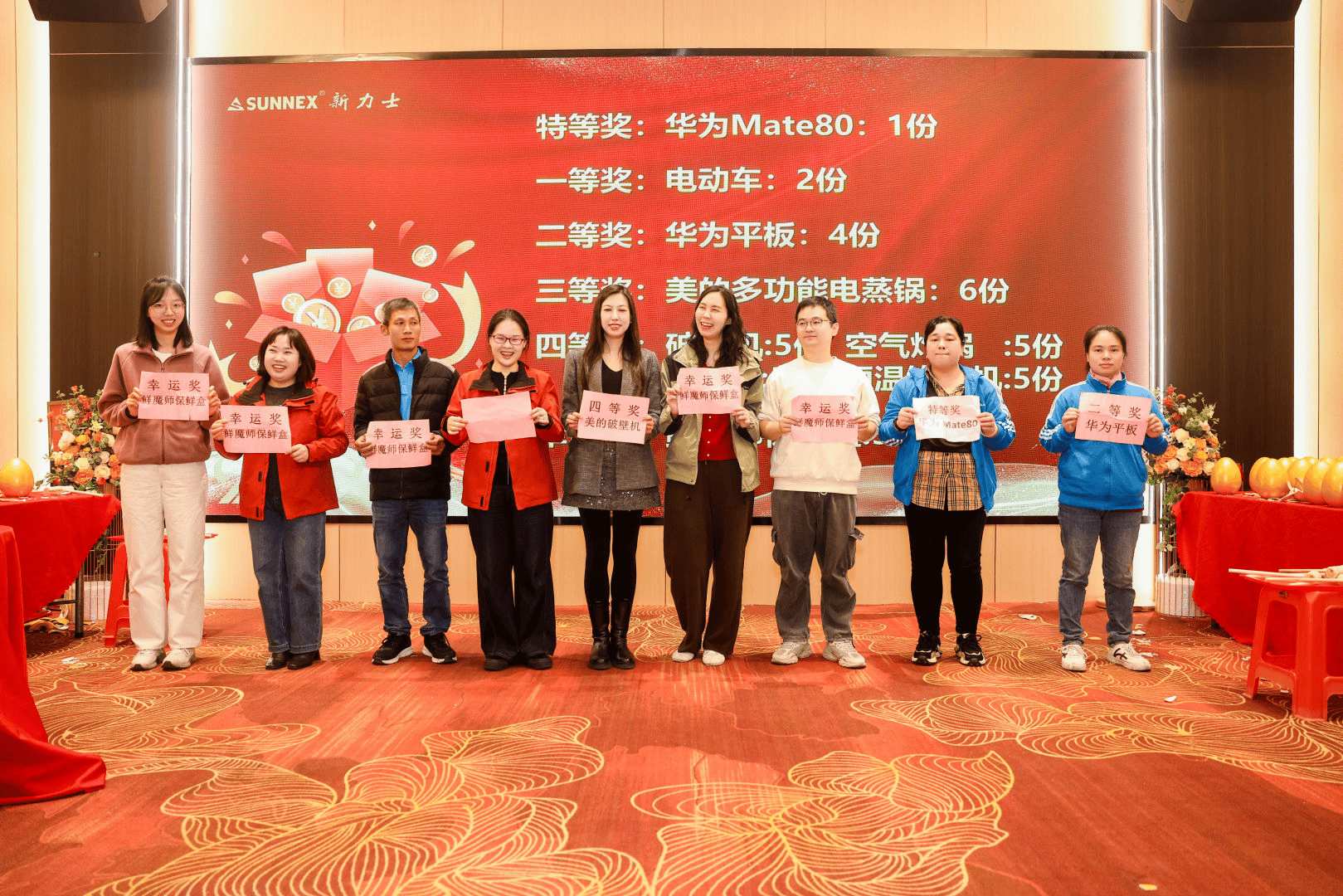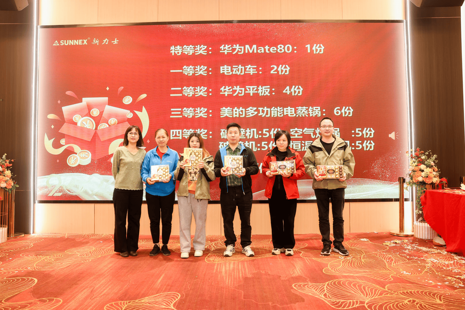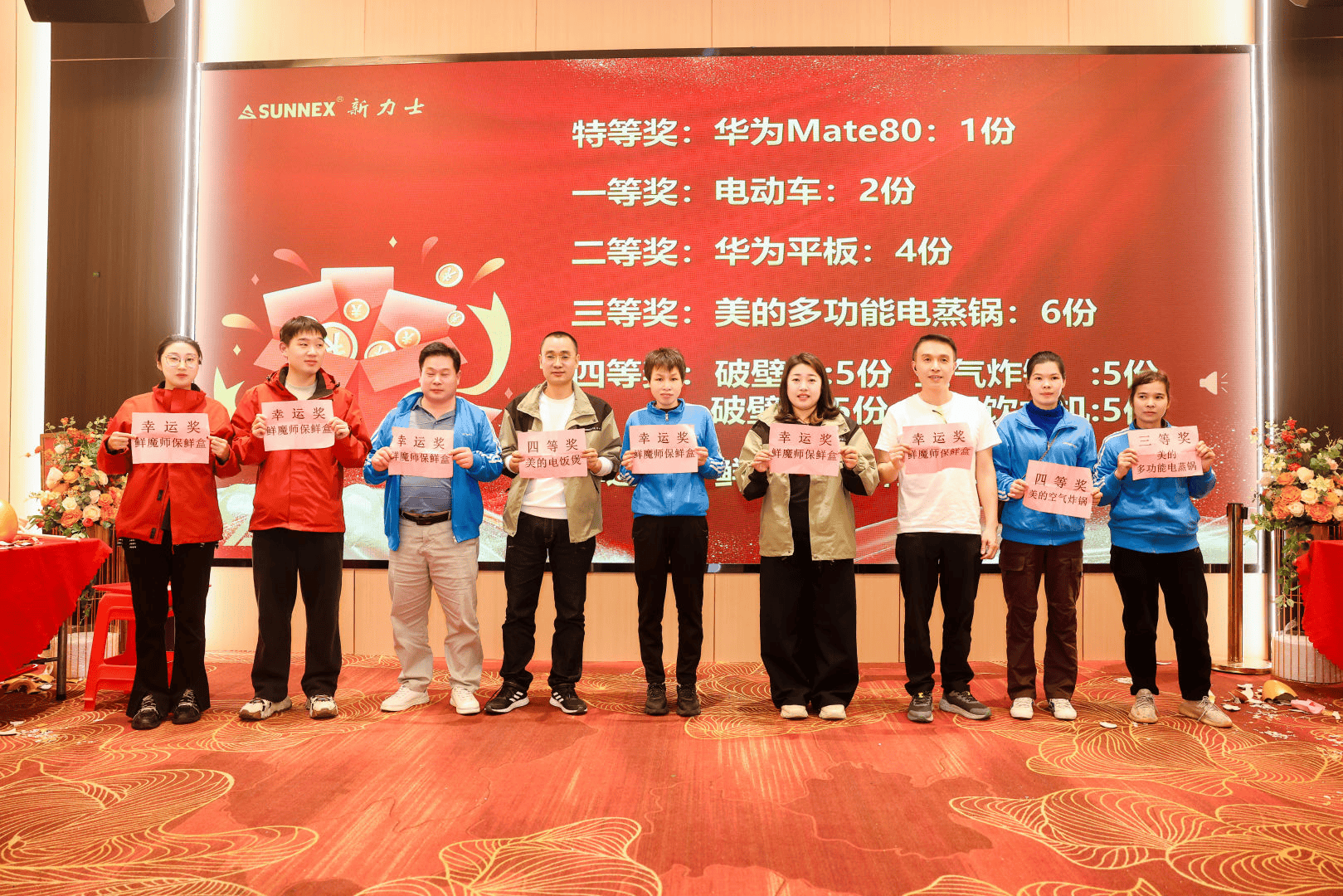 随着一个个彩蛋被敲开,重磅奖项接连揭晓:特等奖华为Mate80手机重磅落定,一等奖电动车为幸运者添彩,平板、电蒸锅、破壁机等实用家电陆续名花有主。从高端数码到居家好物,再到日升实业团队特别赞助的5份精美巧克力,每一份奖品都凝聚着公司对员工与伙伴的感恩,让这份年末惊喜更具温度。